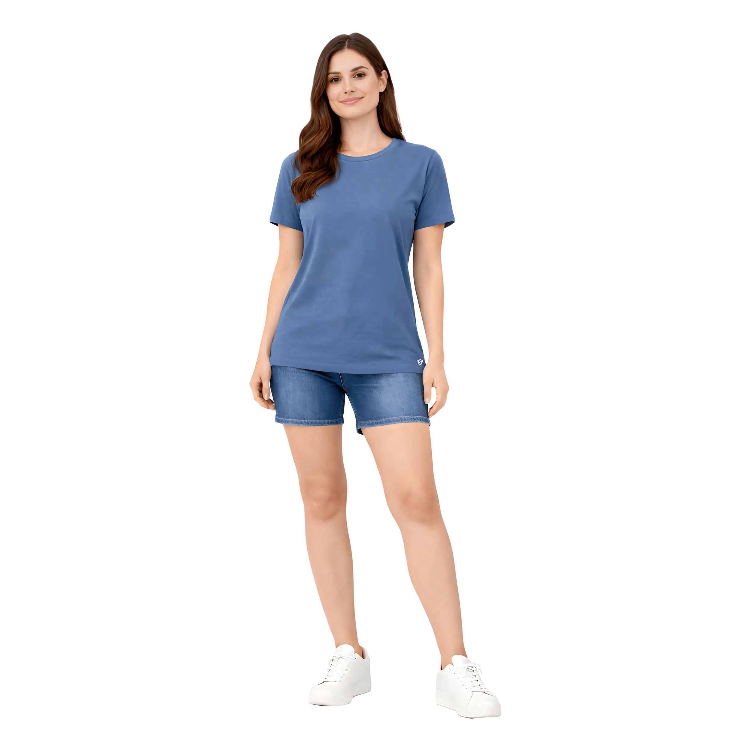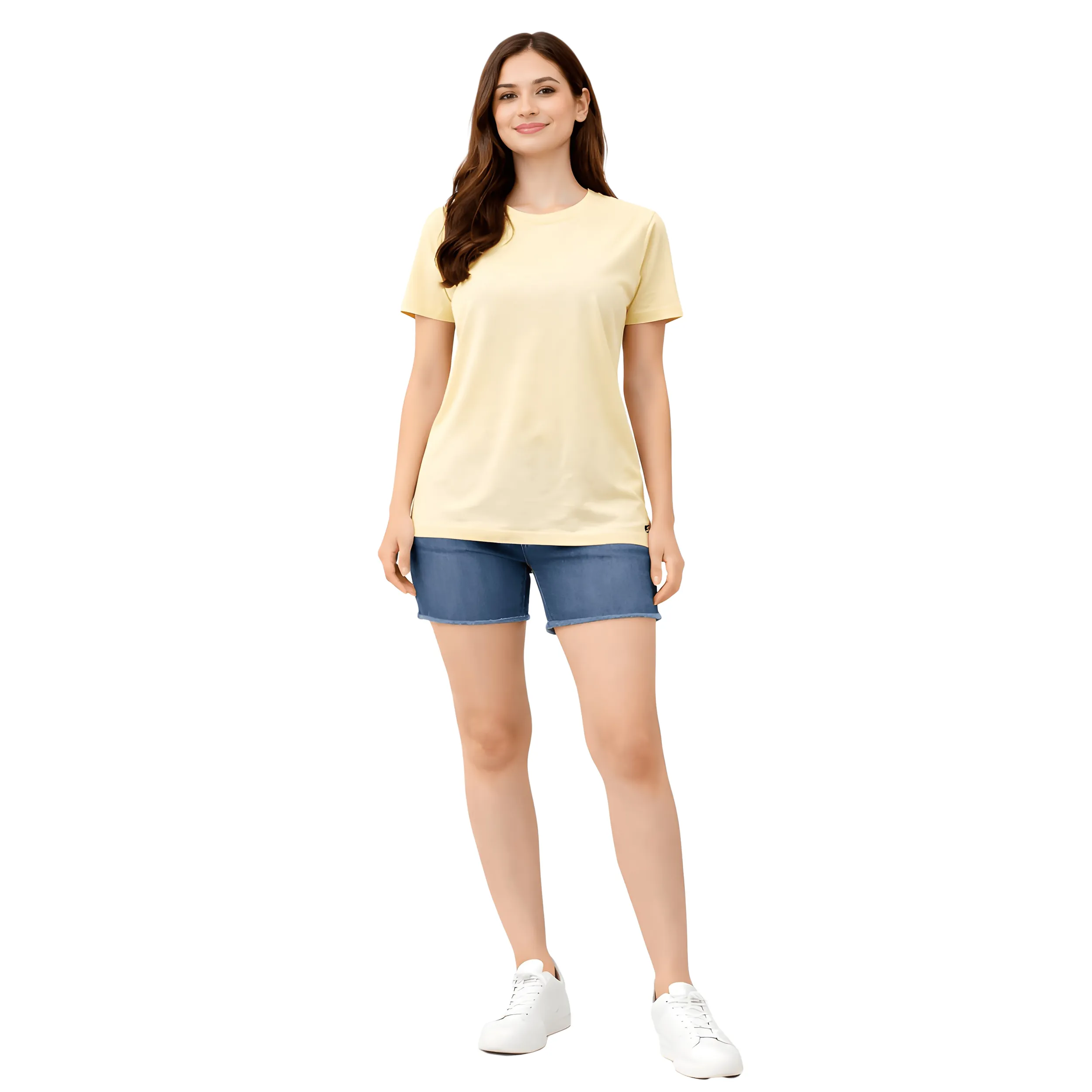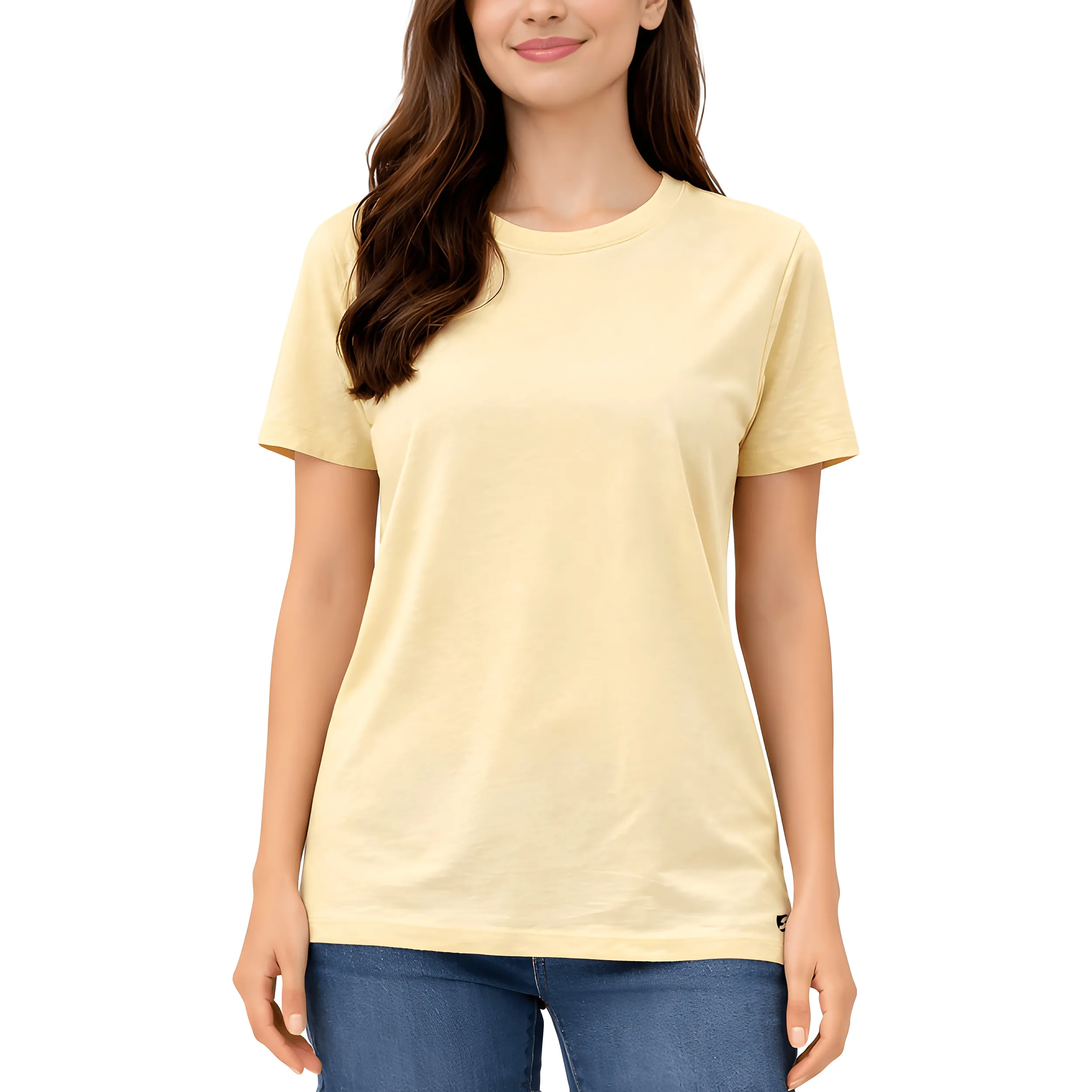 Cotton Round Neck T-Shirt Regular Fit Solid Casual Tee Soft Breathable Top