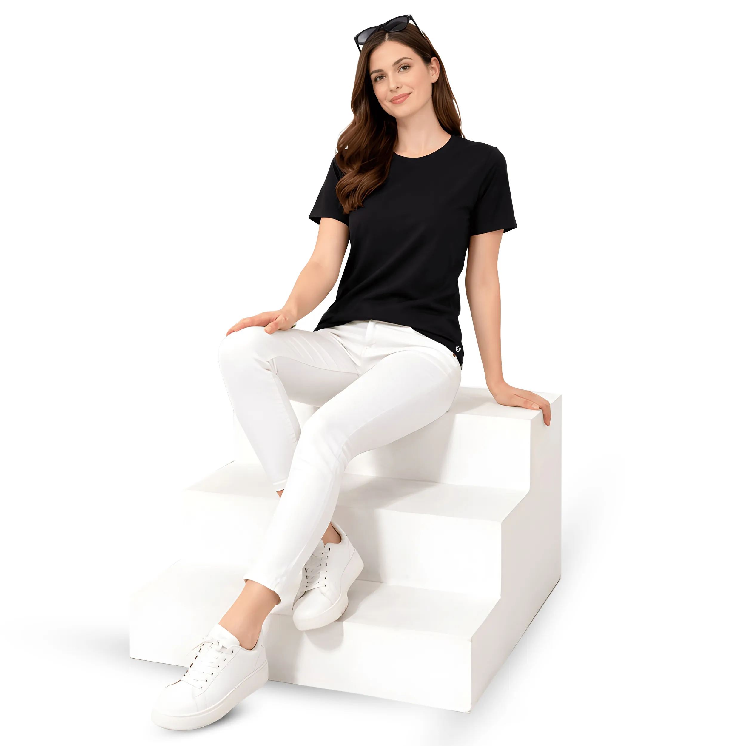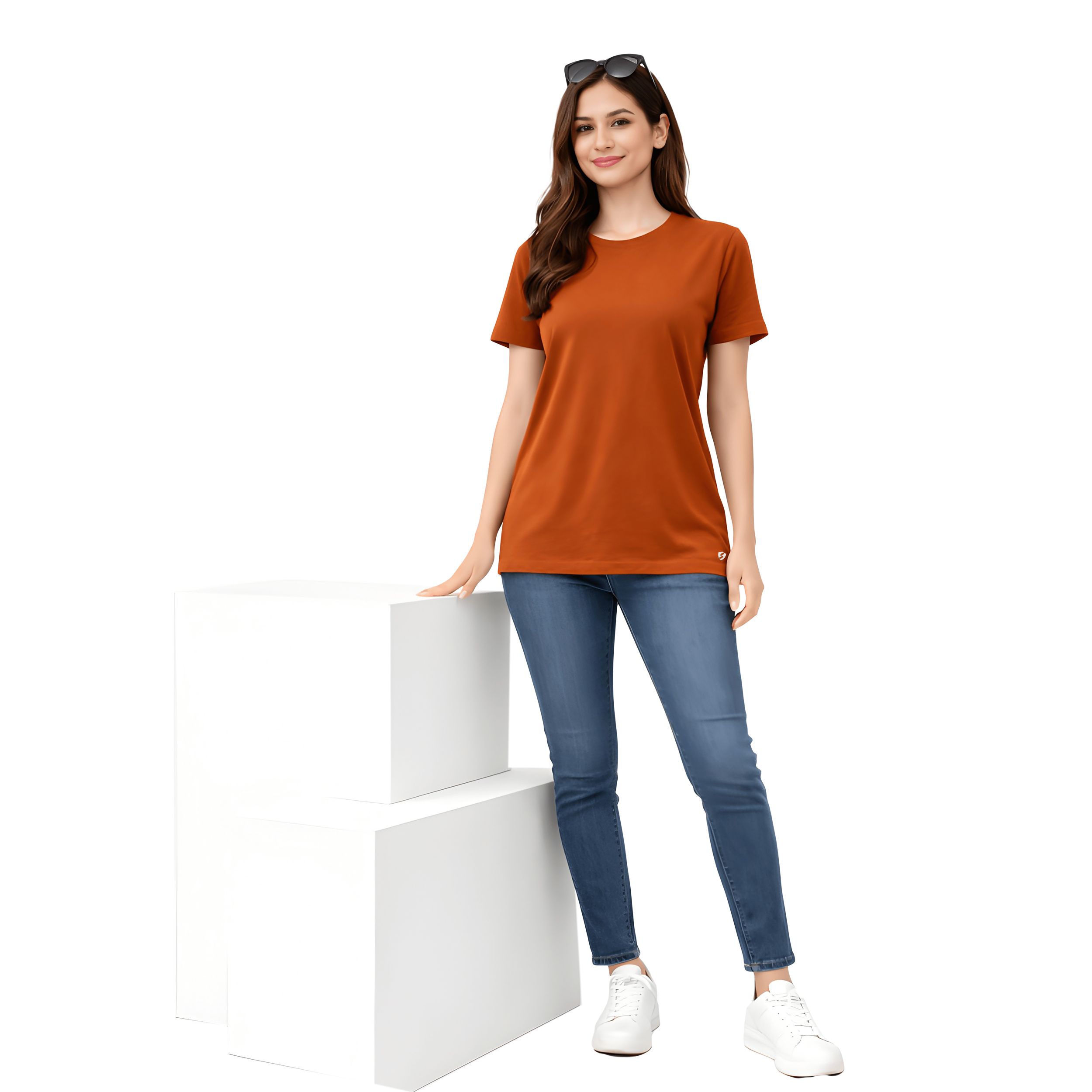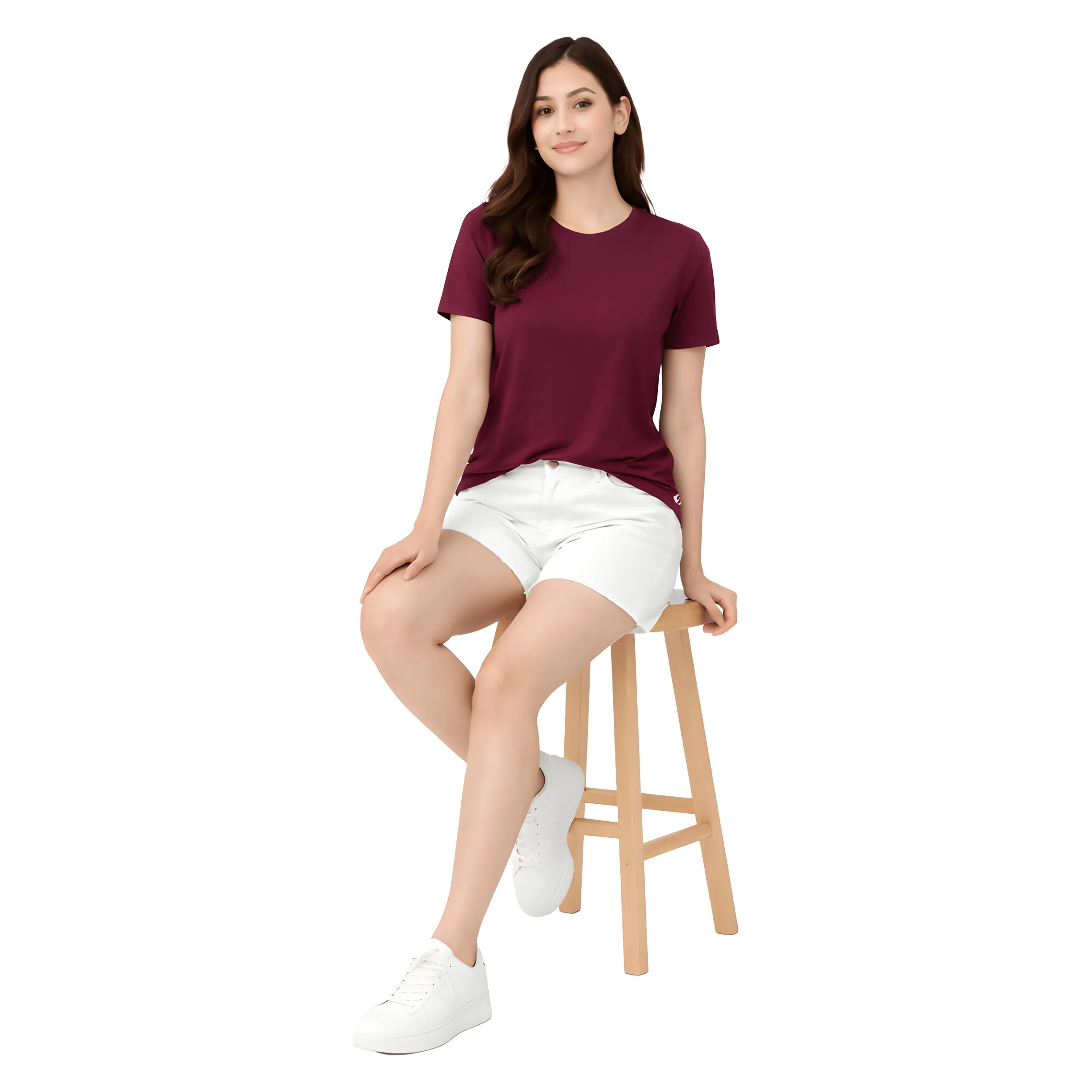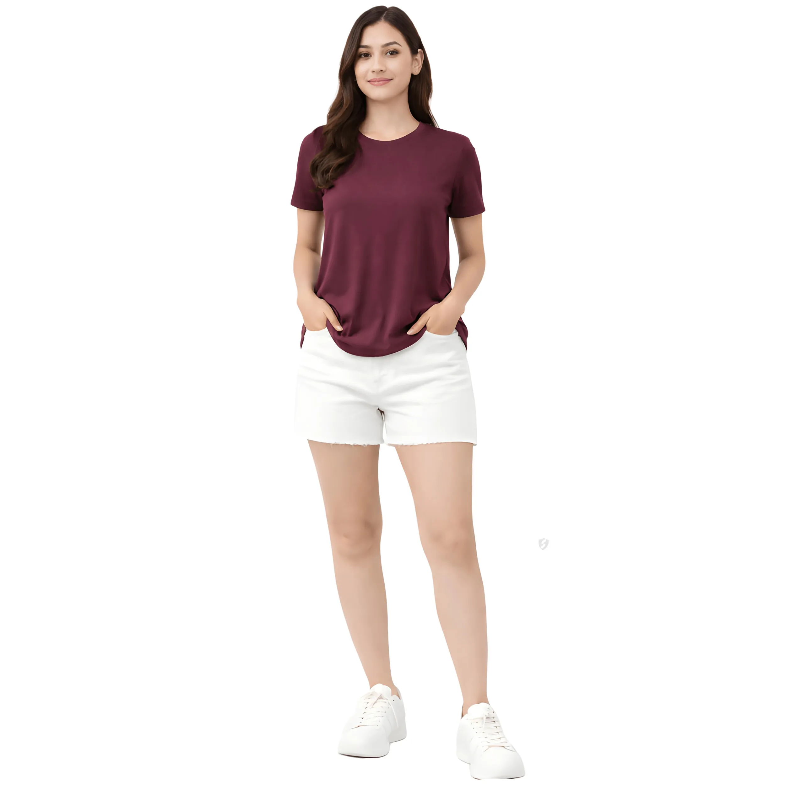 Cotton Round Neck T-Shirt Regular Fit Solid Casual Tee Soft Breathable Top