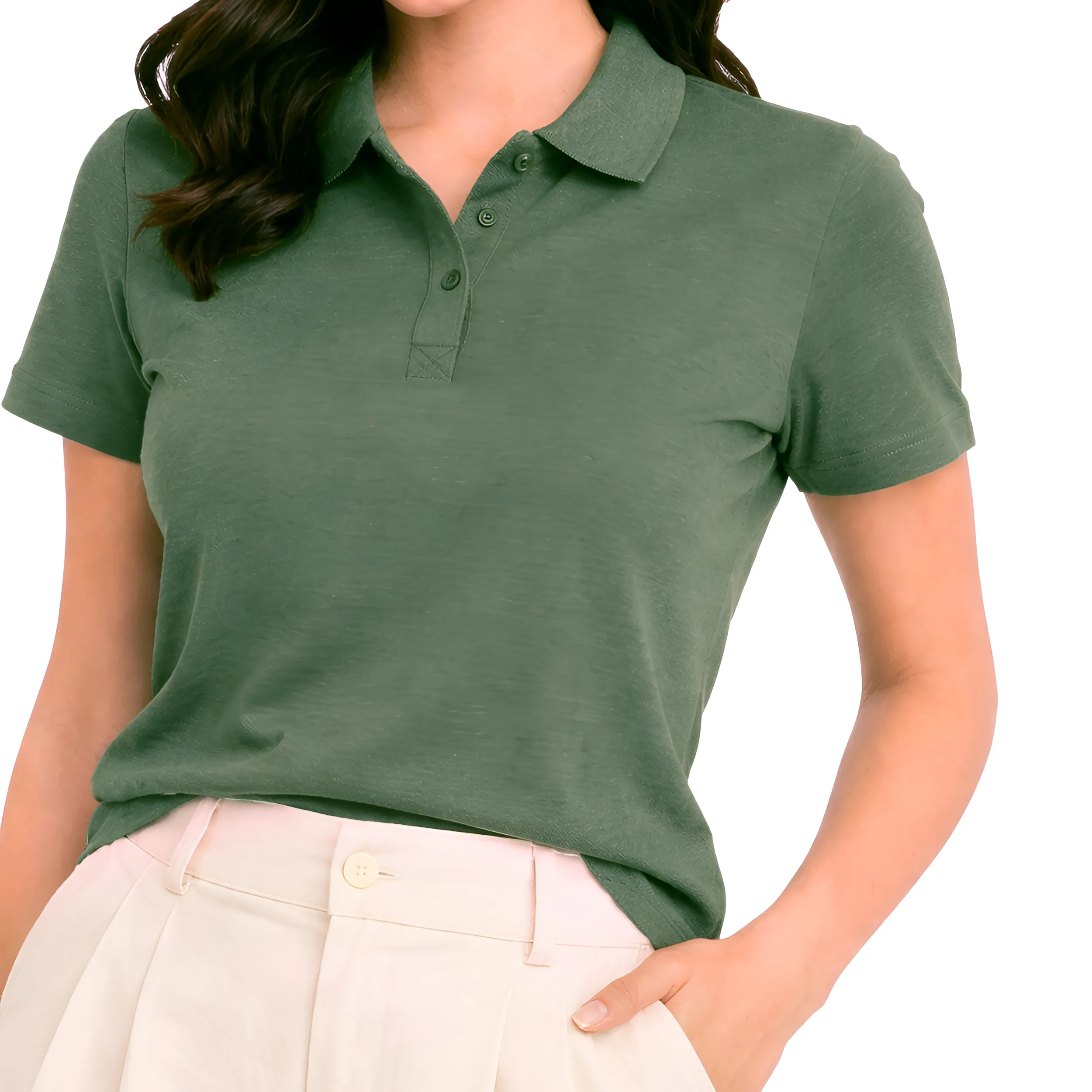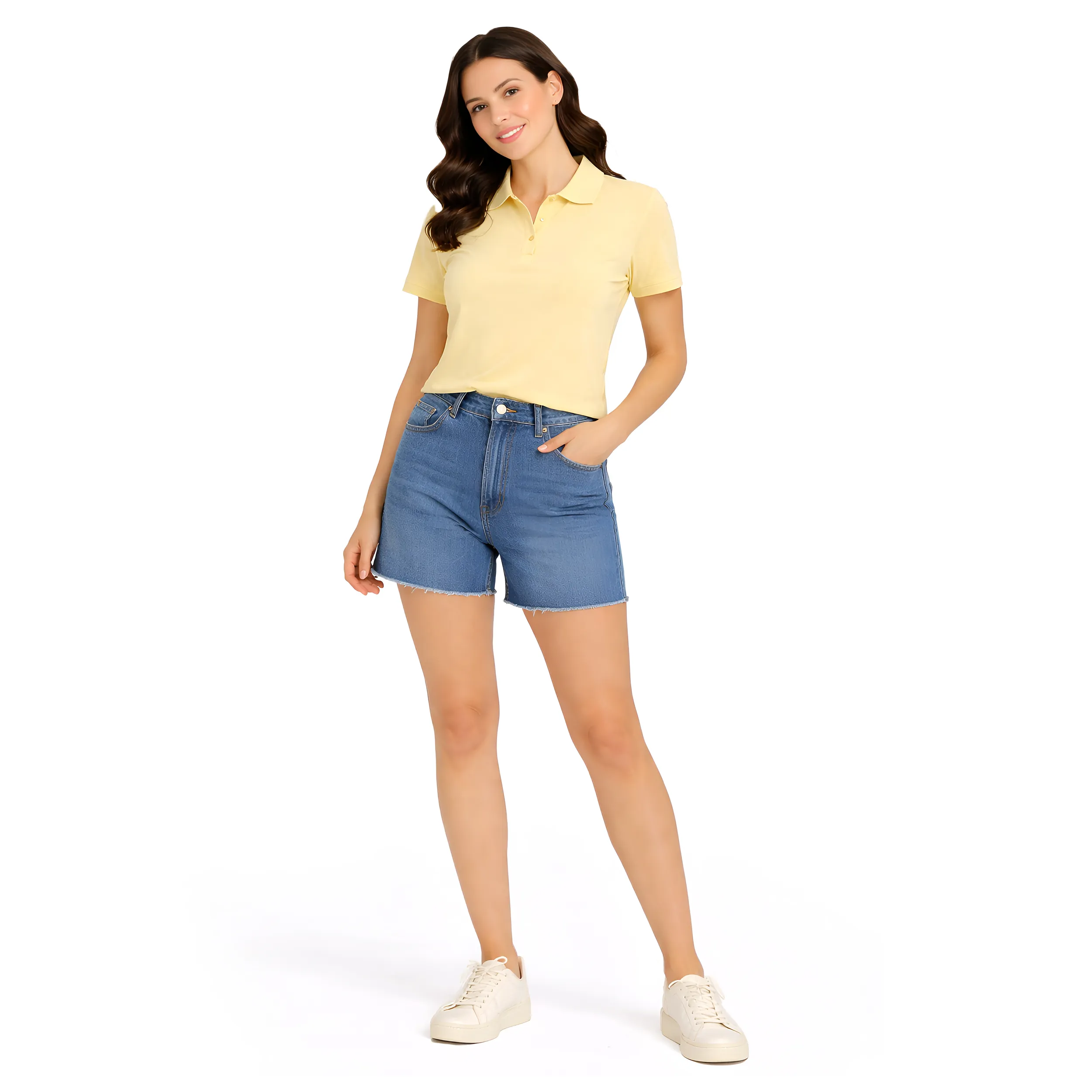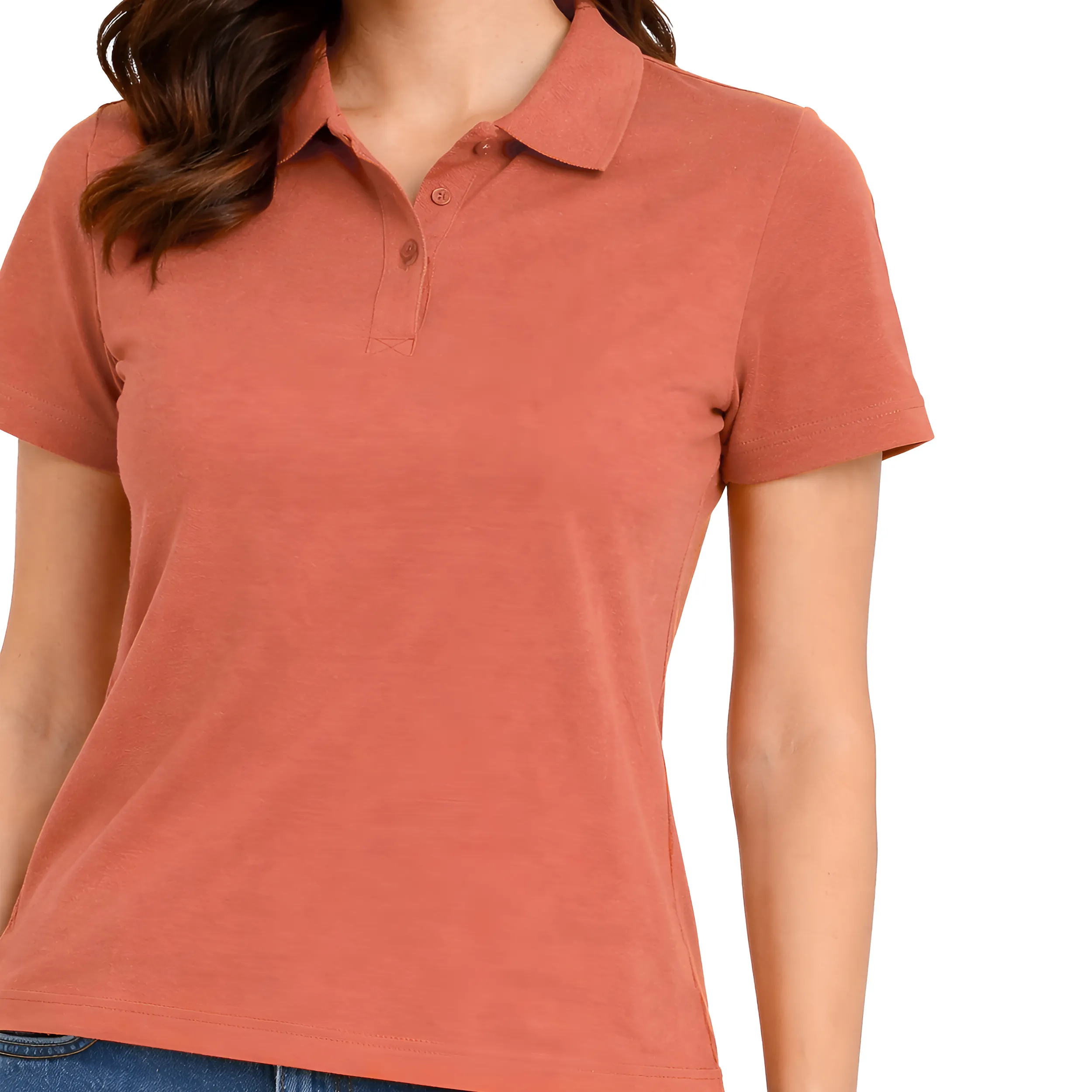 Women Solid Polo T-Shirt Premium Cotton Blend Regular Fit Everyday Comfort
