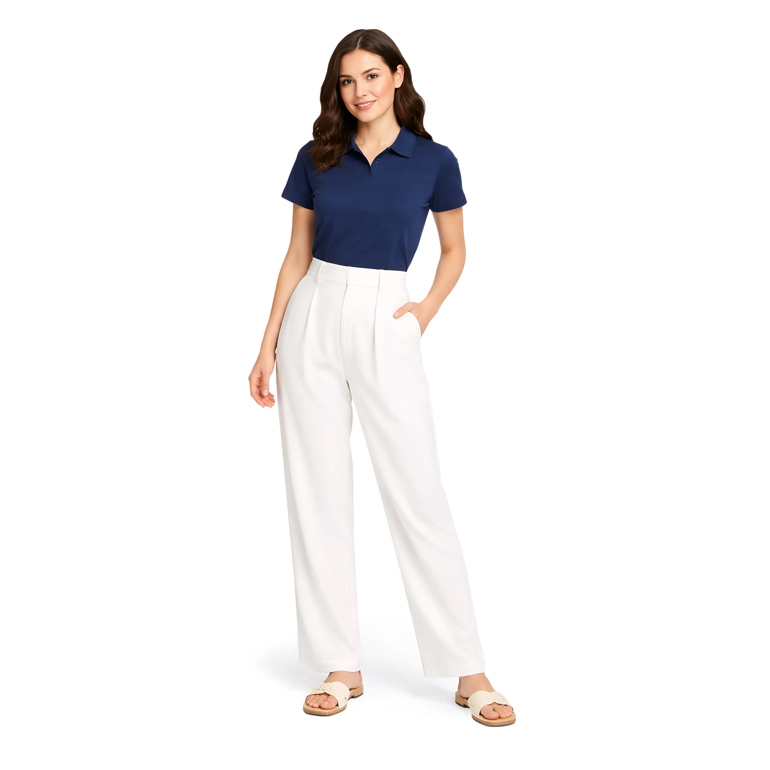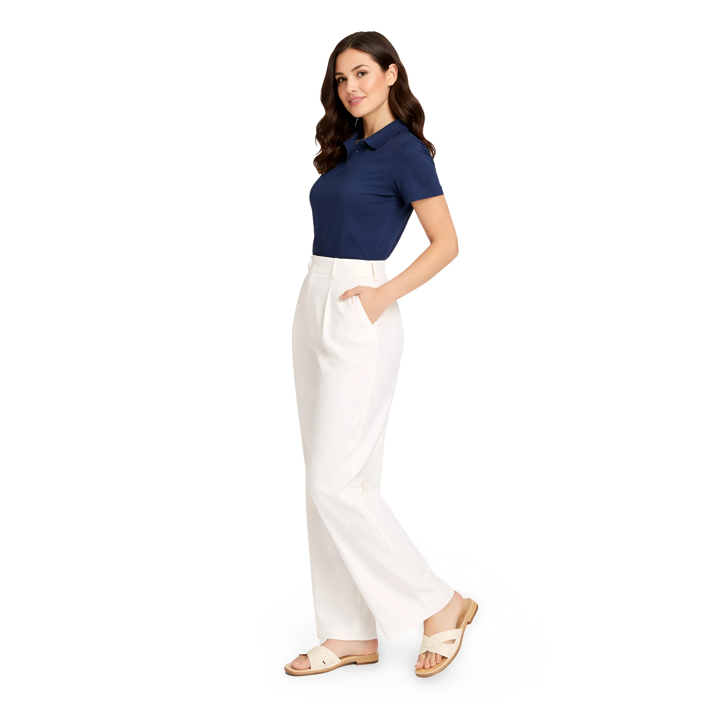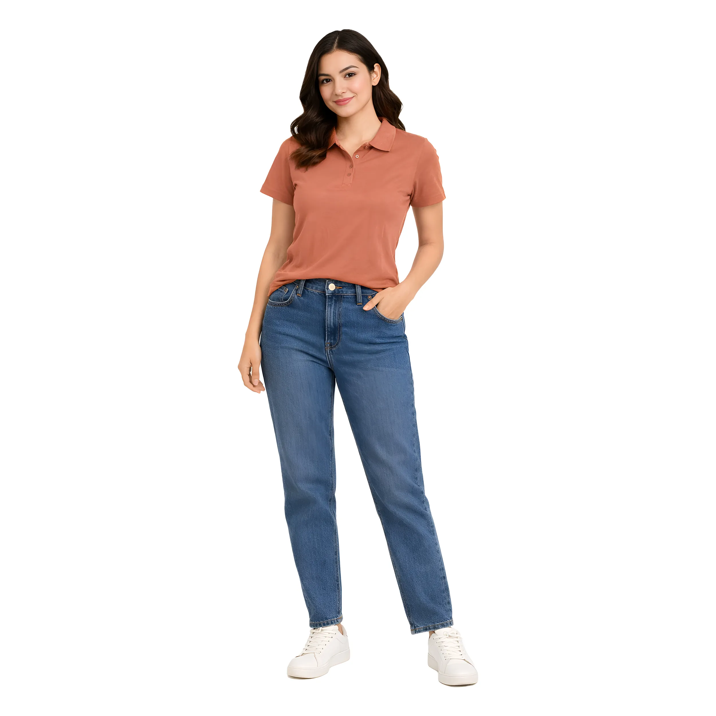 Women Solid Polo T-Shirt Premium Cotton Blend Regular Fit Everyday Comfort